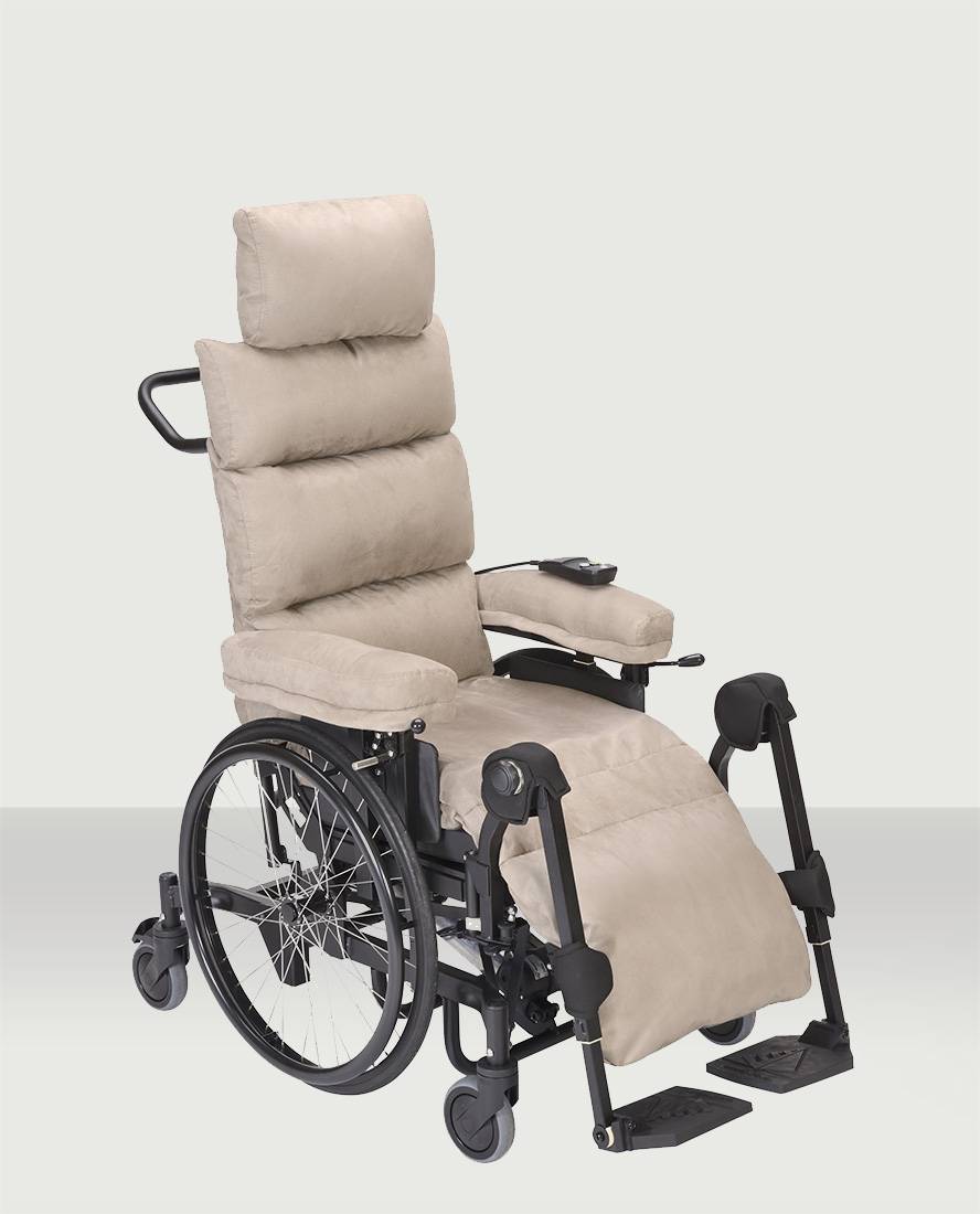Le fauteuil roulant de confort Le Signature s’adapte à toutes les morphologies grâce à ses multiples réglages. Recouvert d’une couette garnie sont confort est inégalable.