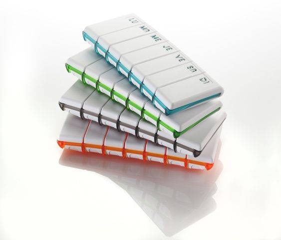 - le pilulier hebdomadaire 7 cases pour chaque jour de la semaine, impliquant une prise unique