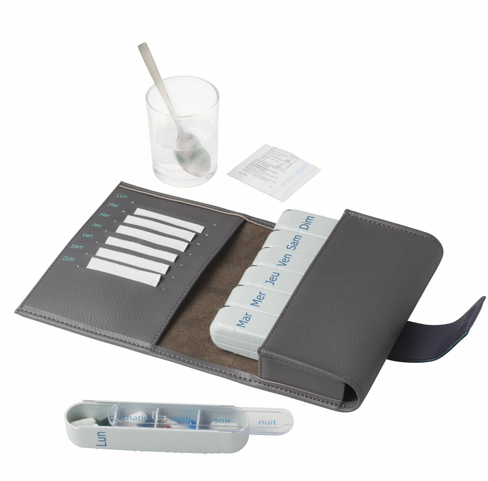 - le pilulier journalier avec 4 cases : matin, midi, soir, nuit